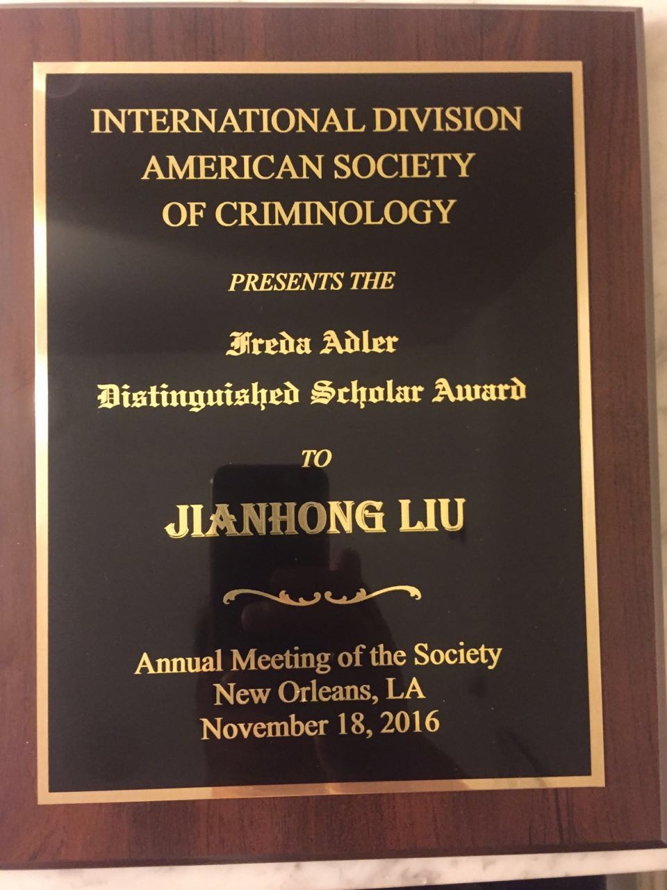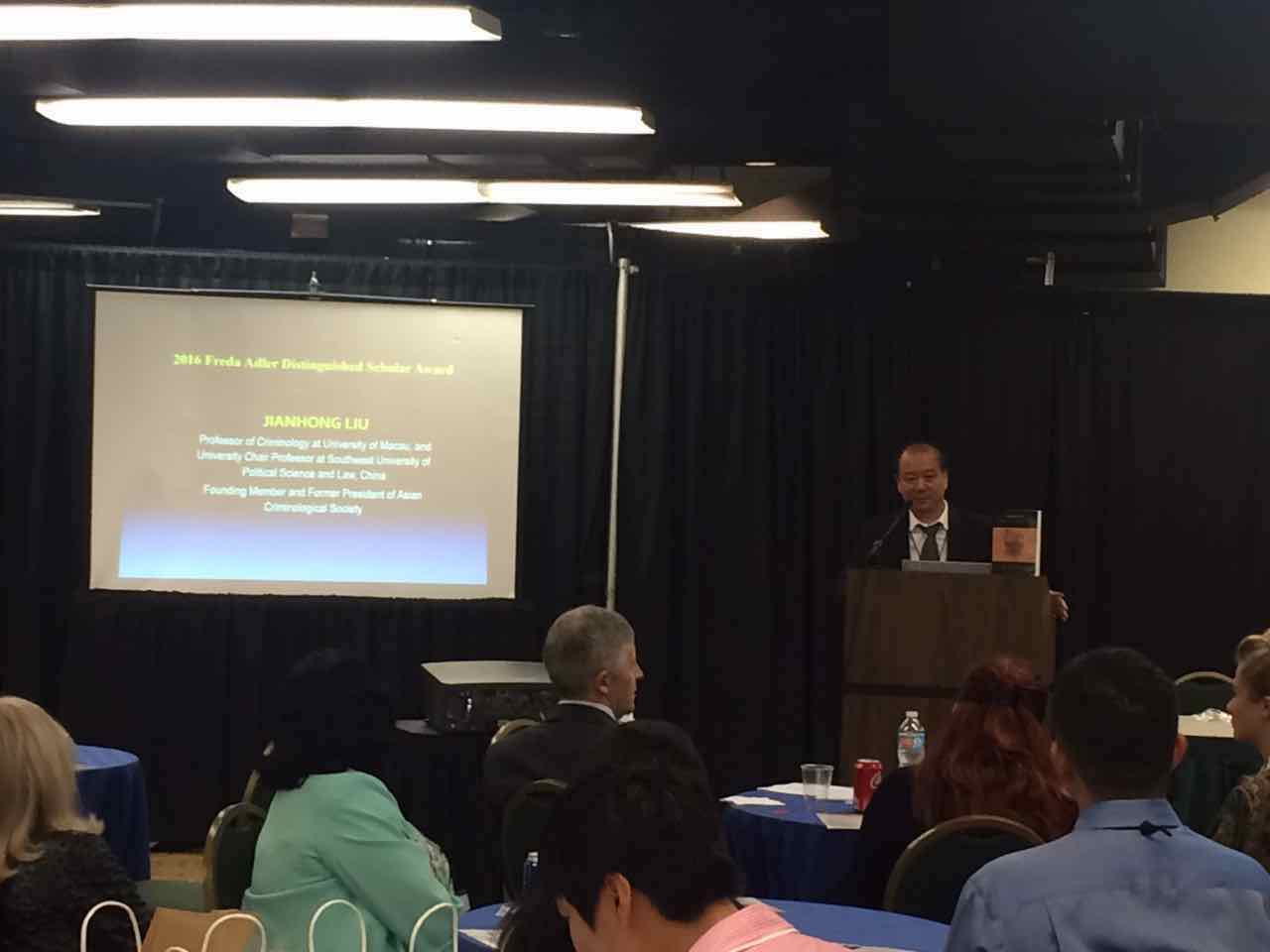 Also in attendance at the conference was CJRC Adjunct Professor Jianhong Liu from the University of Macau, who was awarded the prestigious Freda Adler Distinguished Scholar Award for his outstanding contributions to the field of criminology.