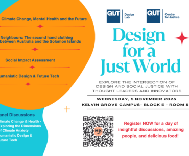 Design for a Just World 2025 is a collaboration between QUT Centre for Justice and QUT Design Lab. It invites researchers, practitioners, and communities to explore how design can contribute to building a fairer and more sustainable future. This year’s program features thought-provoking sessions on social impact assessment,…