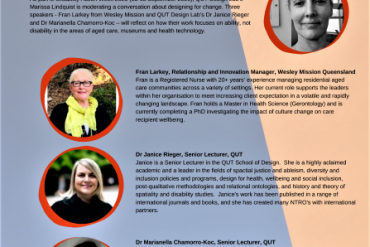 As part of Queensland Disability Action Week from 13-18 September, QUT Design Lab’s Marissa Lindquist is moderating a conversation about designing for change. QUT C4J member, and Senior…